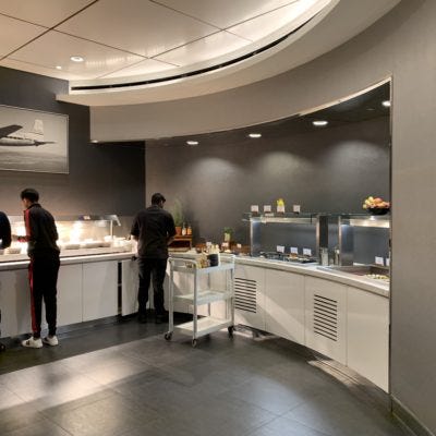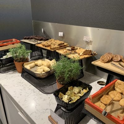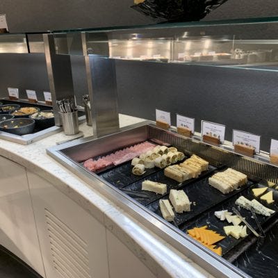Αμέσως αριστερά από την είσοδο του United Club θα βρείτε έναν χωριστό χώρο με τα φαγητά και διάφορα αναψυκτικά και ροφήματα.